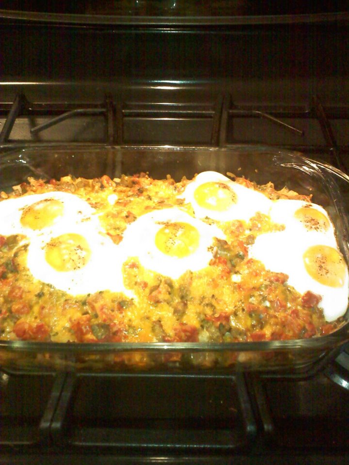 If you decide to put extra eggs ontop, I recommend cooking in skillet seperately from casserole. I tried to bake it ontop in the oven but the eggs got way too over cooked. Its easier to keep track of the eggs' cooking in the skillet.